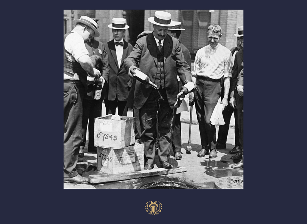 Ровно в 00:01 17 января 1920 года в США вступила в силу Восемнадцатая поправка к Конституции, посредством которой был наложен полный федеральный запрет на производство, продажу и транспортировку алкогольных напитков в стране. Любопытно, что само потребление алкоголя формально не запрещалось, что создало значительную правовую лазейку.