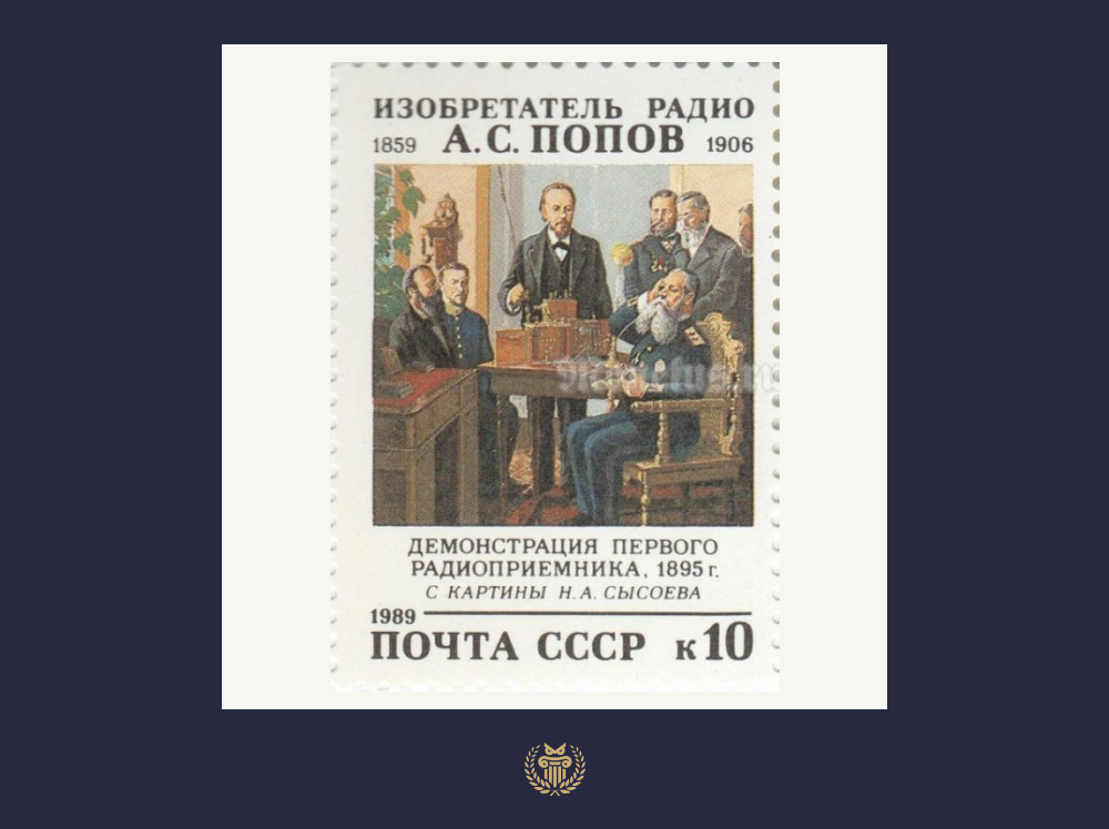 — В 1896 г. А.С. Попов опубликовал статью «Прибор для обнаружения и регистрирования электрических колебаний» с описанием конструкции, принципа действия и технологии изготовления автоматического грозоотметчика с указанием на возможность его применения для передачи сигналов.